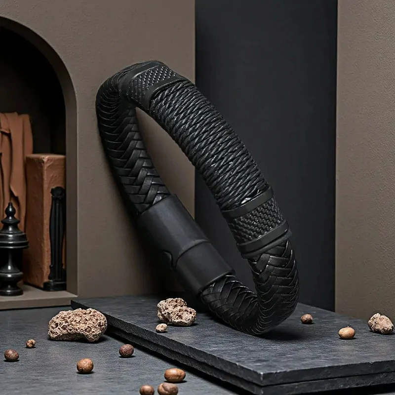 سوار رجالي جلدي مضفر يدوي